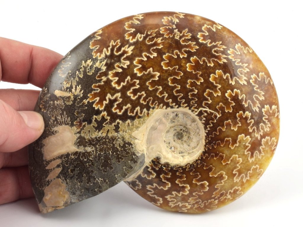 Na amonitu jsou jasně patrné kontrastní zvlněné švy, tzv. sutury, které tvarem připomínají dubový list. Madagaskarští amoniti rodu Cleoniceras patří k nejběžnějším leštěným amonitům na trhu. Pěkně zachovalé a vyleštěné kusy si udržují stále vysokou hodnotu.