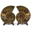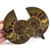 Rozřízlý a vyleštěný jedinec amonita rodu Cleoniceras z Madagaskaru s dobře patrnou vnitřní stavbou komůrek.