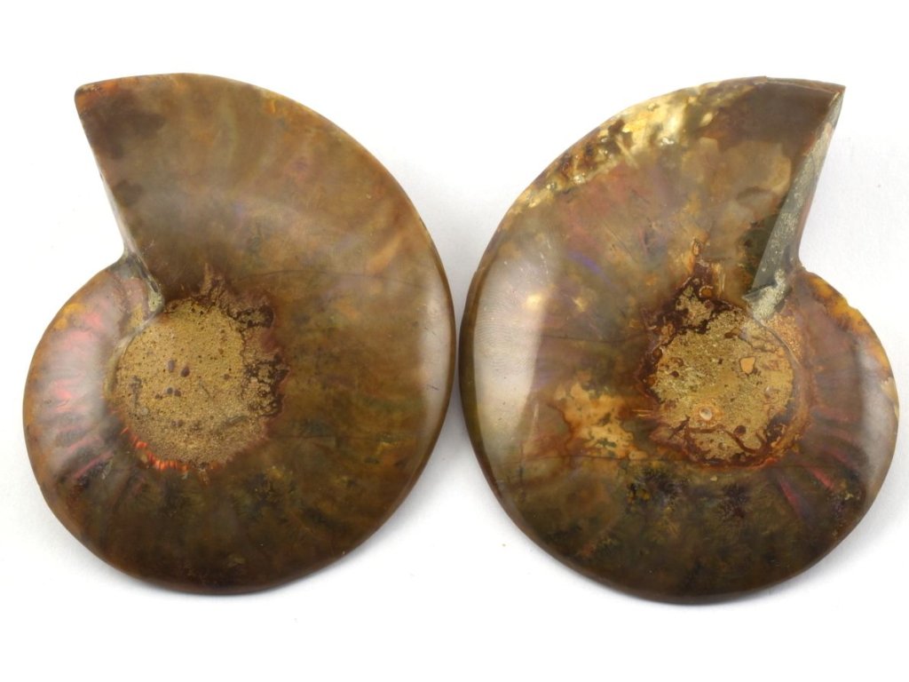 Rozřízlý a vyleštěný jedinec amonita rodu Cleoniceras z Madagaskaru s dobře patrnou vnitřní stavbou komůrek.
