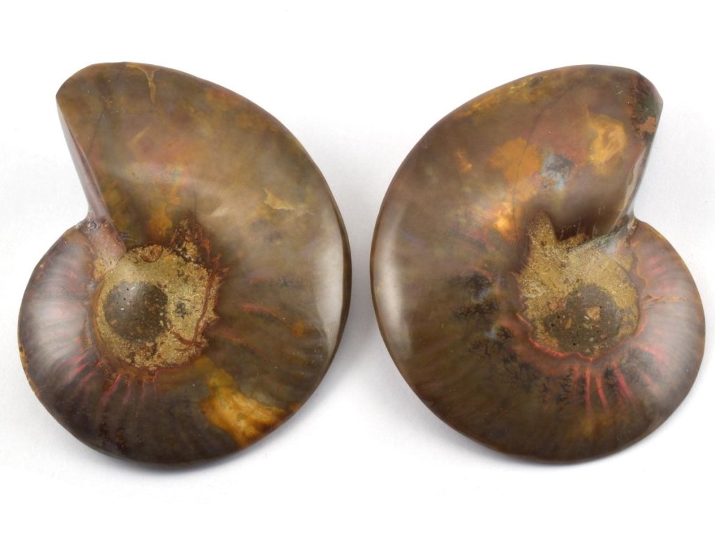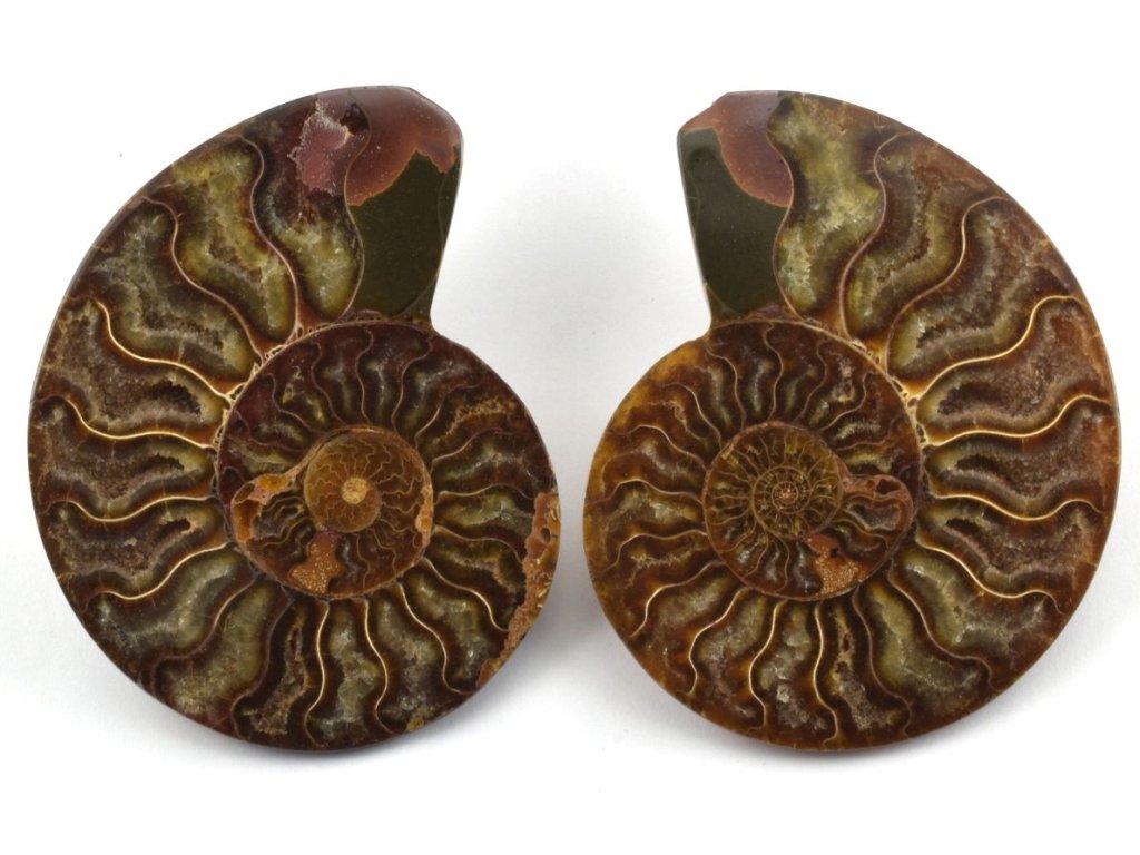 Rozřízlý a vyleštěný jedinec amonita rodu Cleoniceras z Madagaskaru s dobře patrnou vnitřní stavbou komůrek.