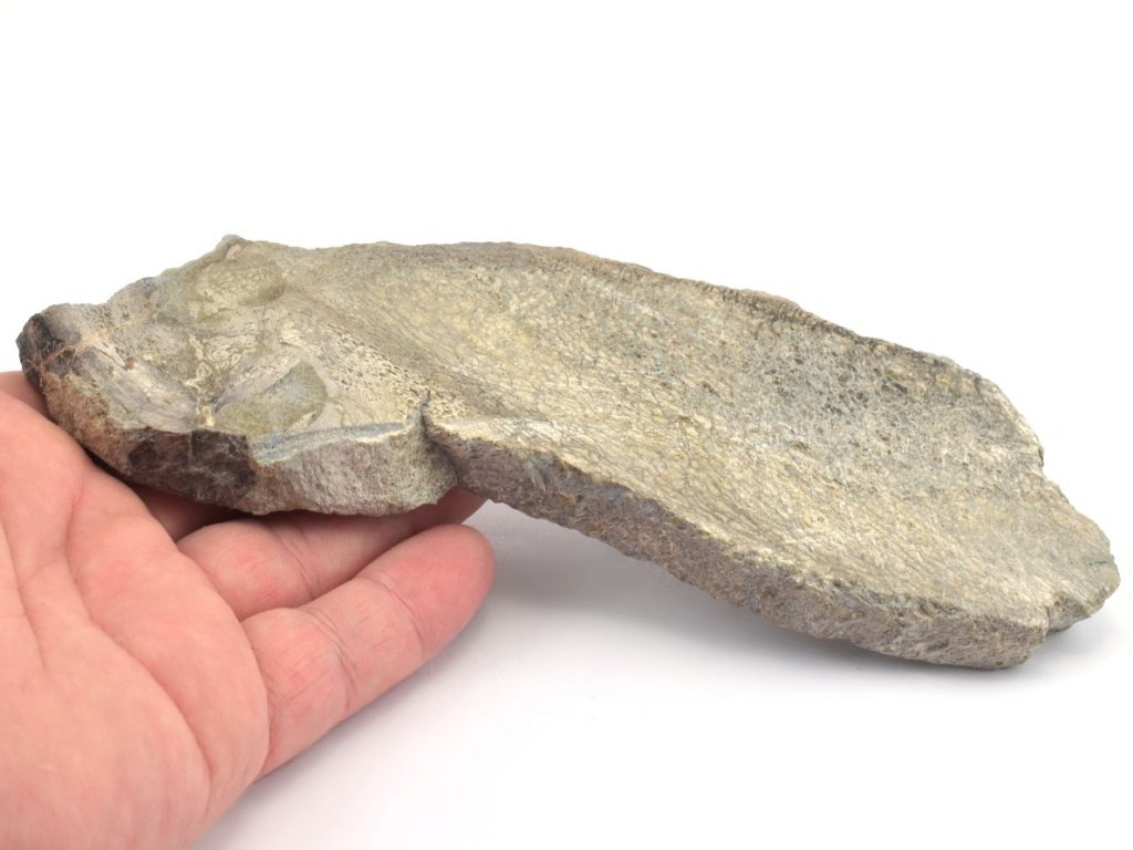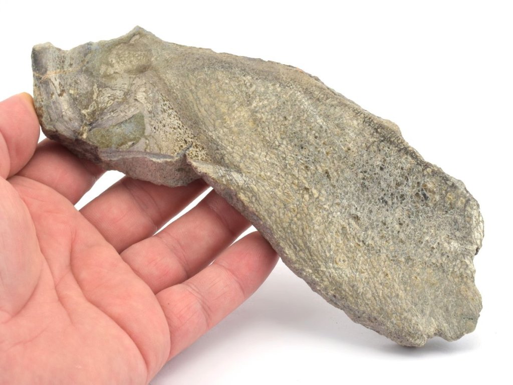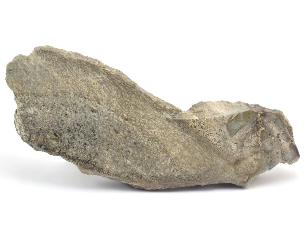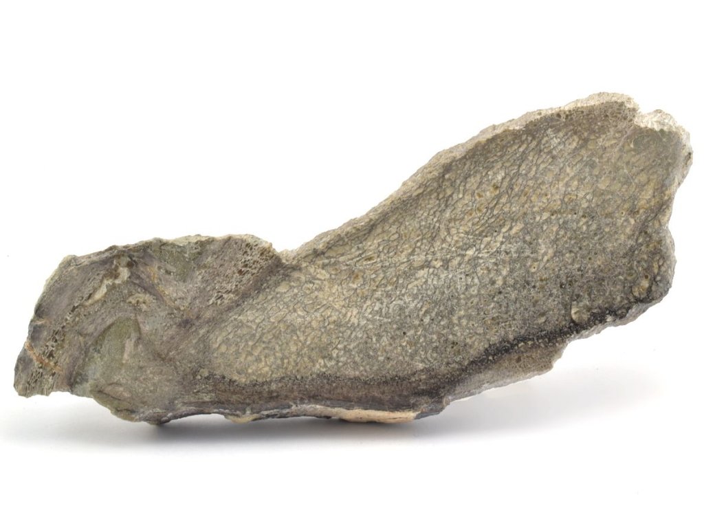 Kost je oboustranně vyleštěna, aby se odhalila její vnitřní struktura. Plátek není po celé své délce stejně silný. Síla plátku kolísá v rozmezí uvedeného v popisu výše. Kosti prošly procesem petrifikace (zkamenění), ve které byl původní fosilní materiál nahrazen oxidem křemičitým a jinými minerály. Vnitřní struktura kosti však zůstala zachována a je na řezu velmi dobře viditelná.