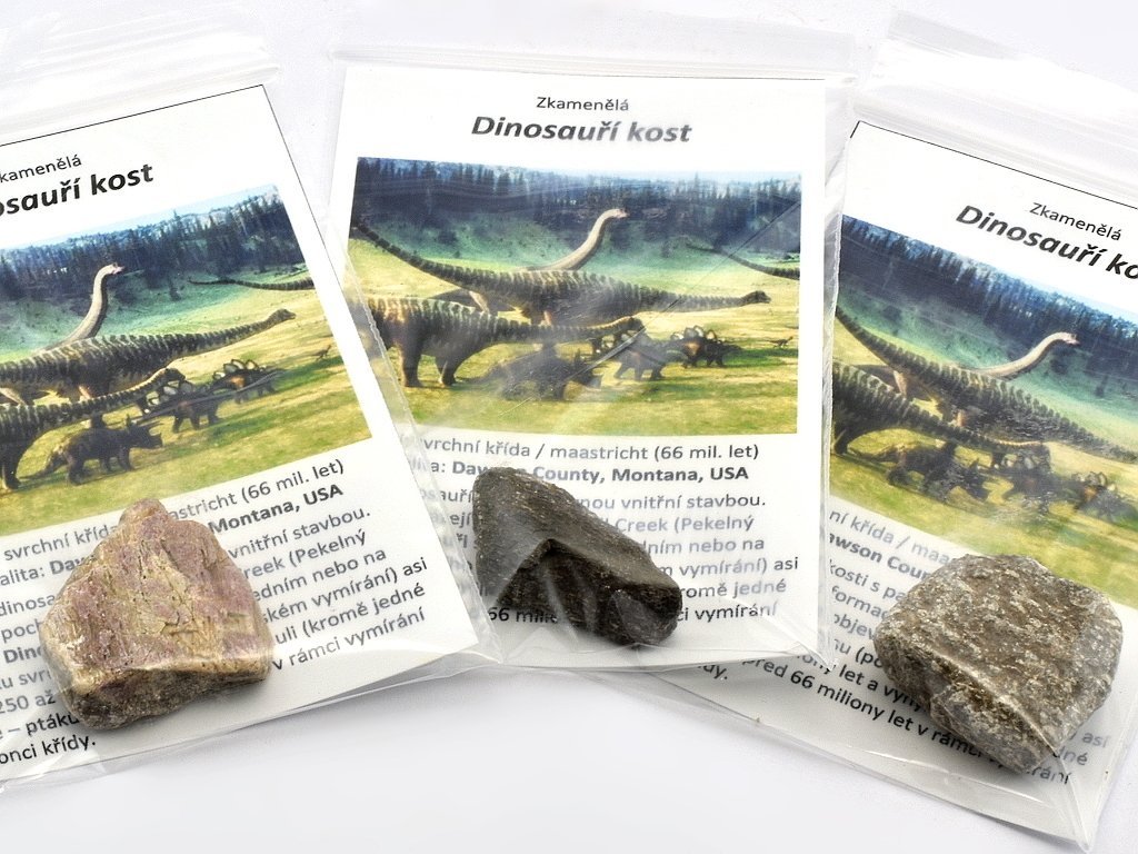 Cena za 1 ks úlomku kosti dinosaura.