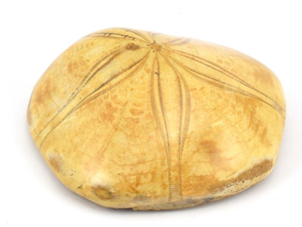 Tato zkamenělina zploštělé, dvojstranně souměrné mořské ježovky druhu Pygurus marmonti pochází z okolí obce Sakaraha na Madagaskaru. Její stáří je určeno přibližně na 157 milionů let. Zkamenělina je jednostranně leštěná a na leštěném povrchu je jasně patrná struktura těla (kostry) ježovky.