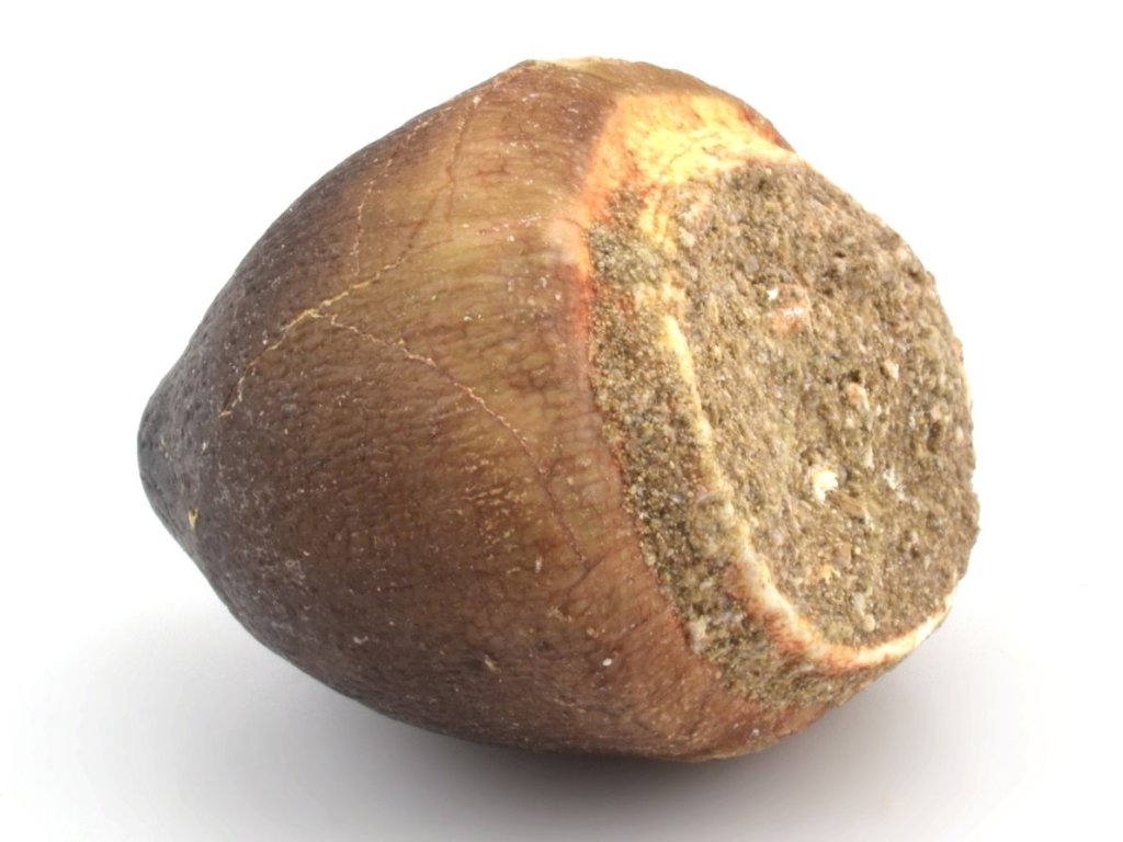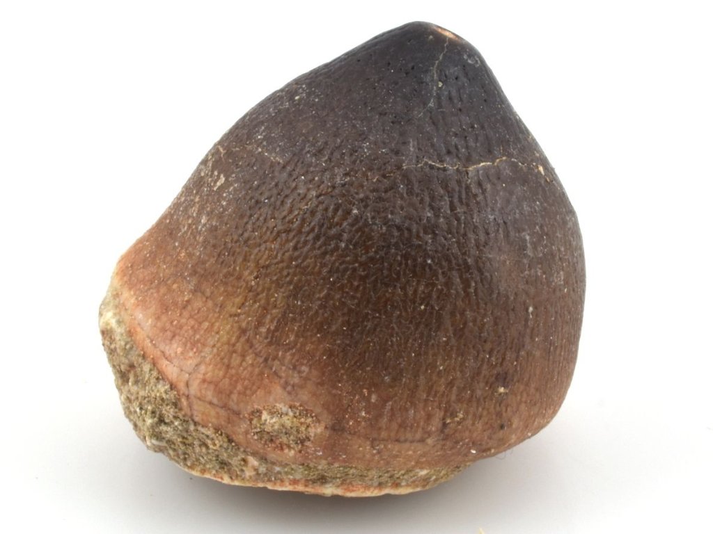Velký výběrový kulovitý zub mosasaura Globidens phosphaticus s dobře zachovalou sklovinou.