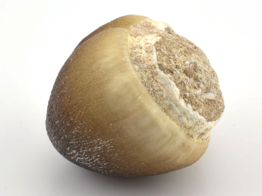 Velký výběrový kulovitý zub mosasaura Globidens phosphaticus s dobře zachovalou sklovinou.