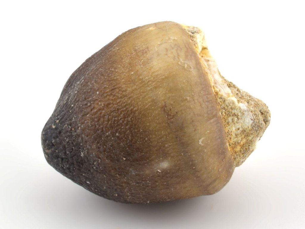 Velký výběrový kulovitý zub mosasaura Globidens phosphaticus s dobře zachovalou sklovinou.
