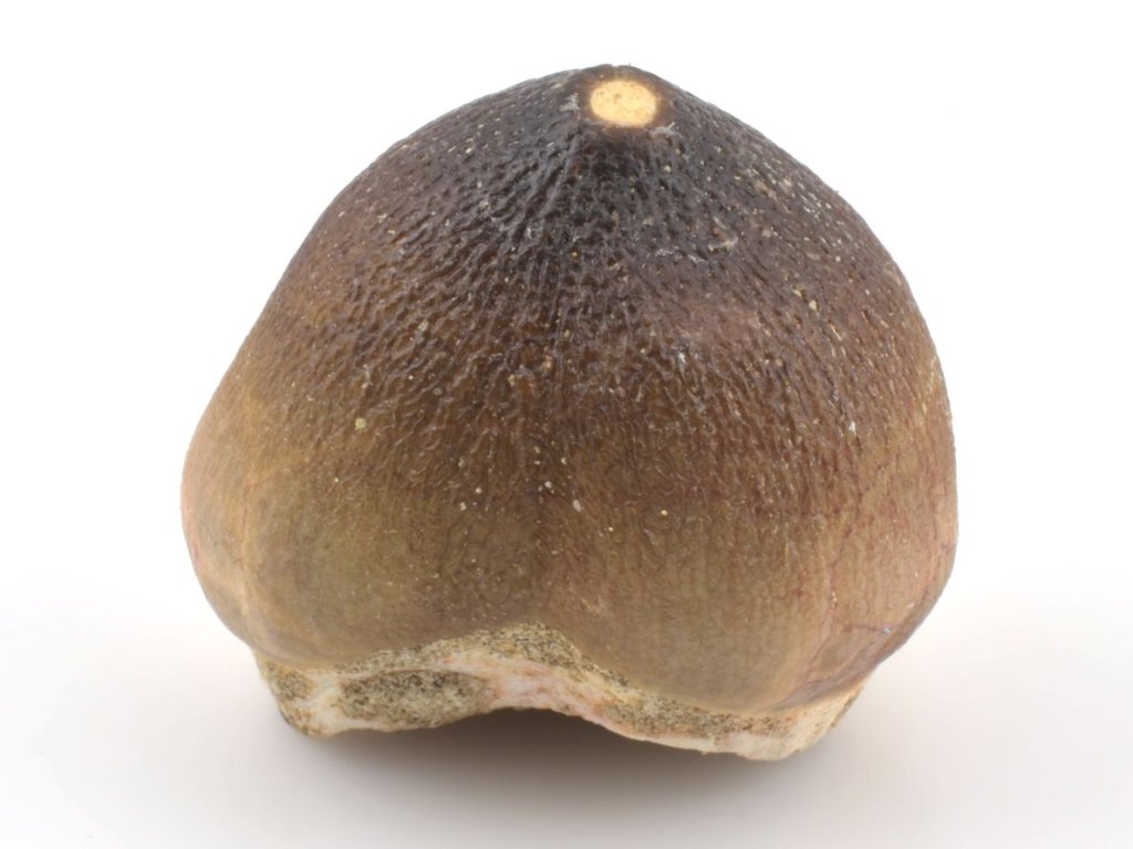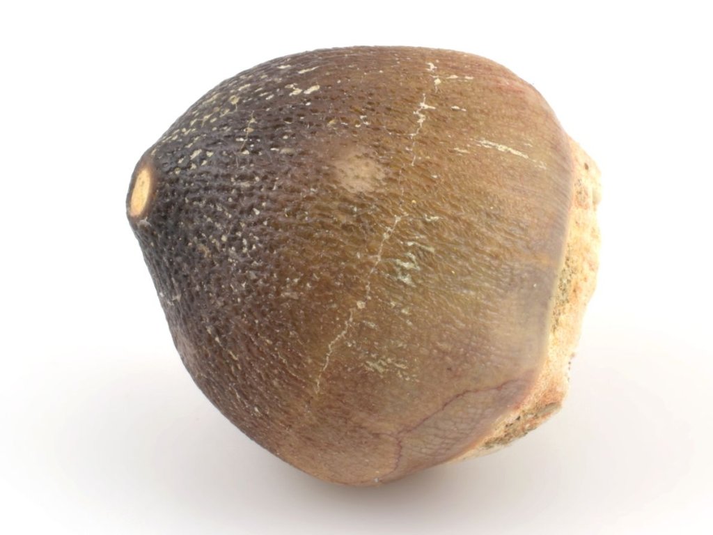 Velký výběrový kulovitý zub mosasaura Globidens phosphaticus s dobře zachovalou sklovinou.