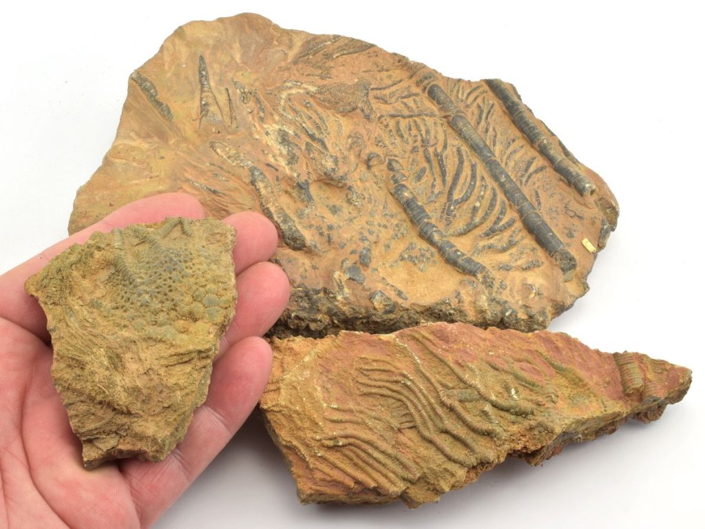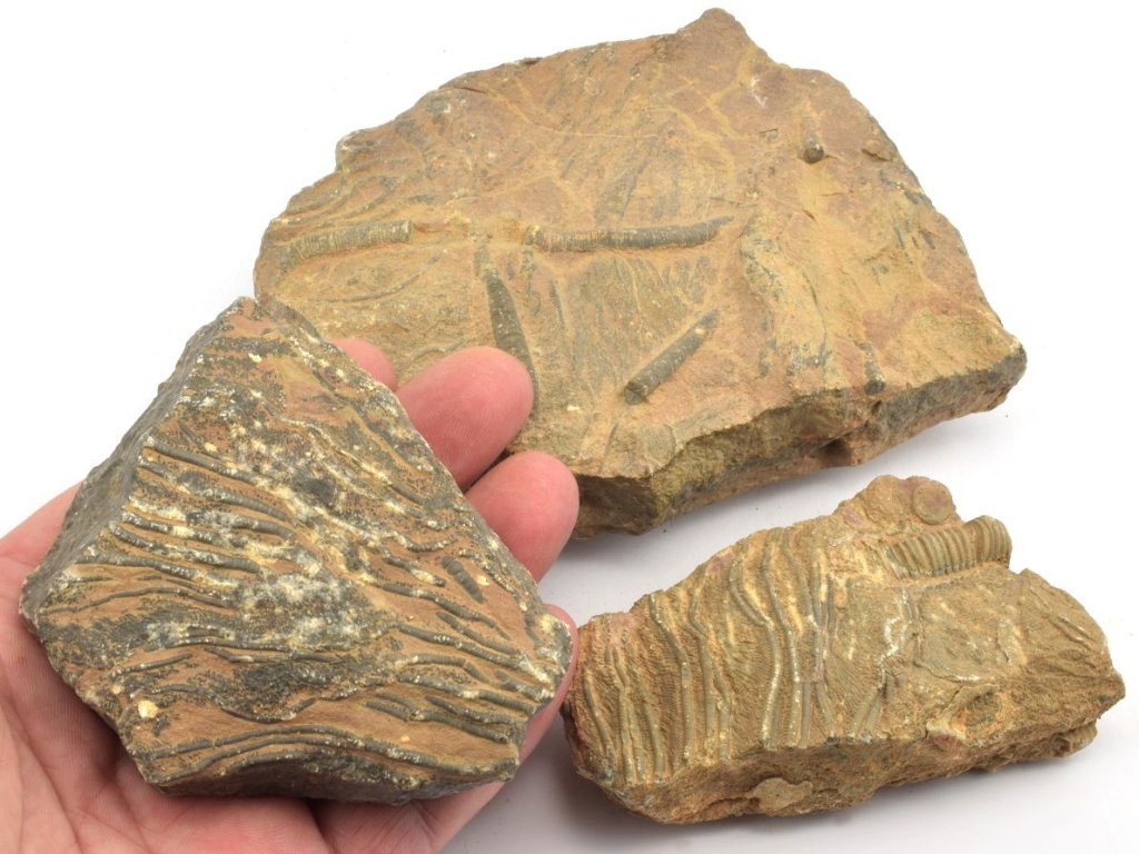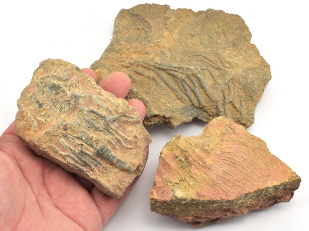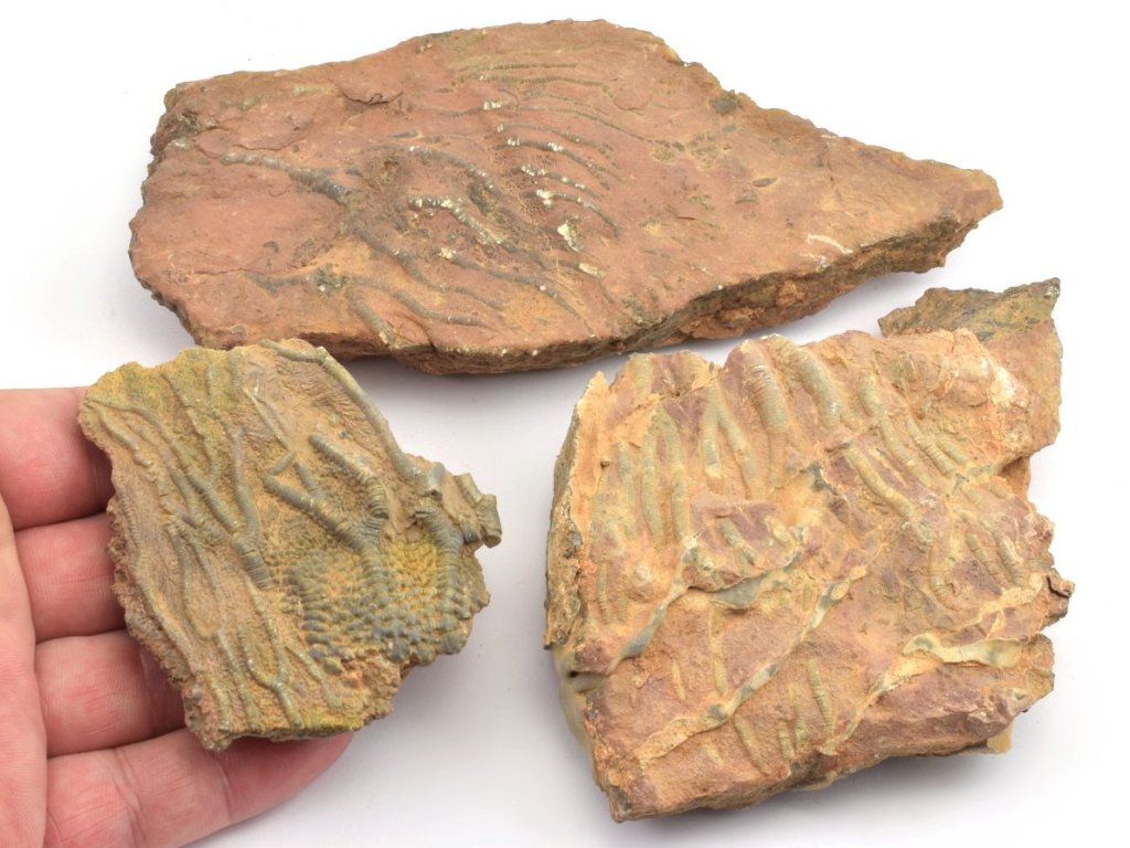 Sada tří kusů zkamenělých částí lilijic z Maroka. Rozměry vzorků se pohybují v rozmezí mezi 7 a 19 cm. Celková hmotnost sady bývá nejčastěji kolem jednoho kilogramu. Na fotografiích jsou zobrazeny některé náhodně vybrané sady.