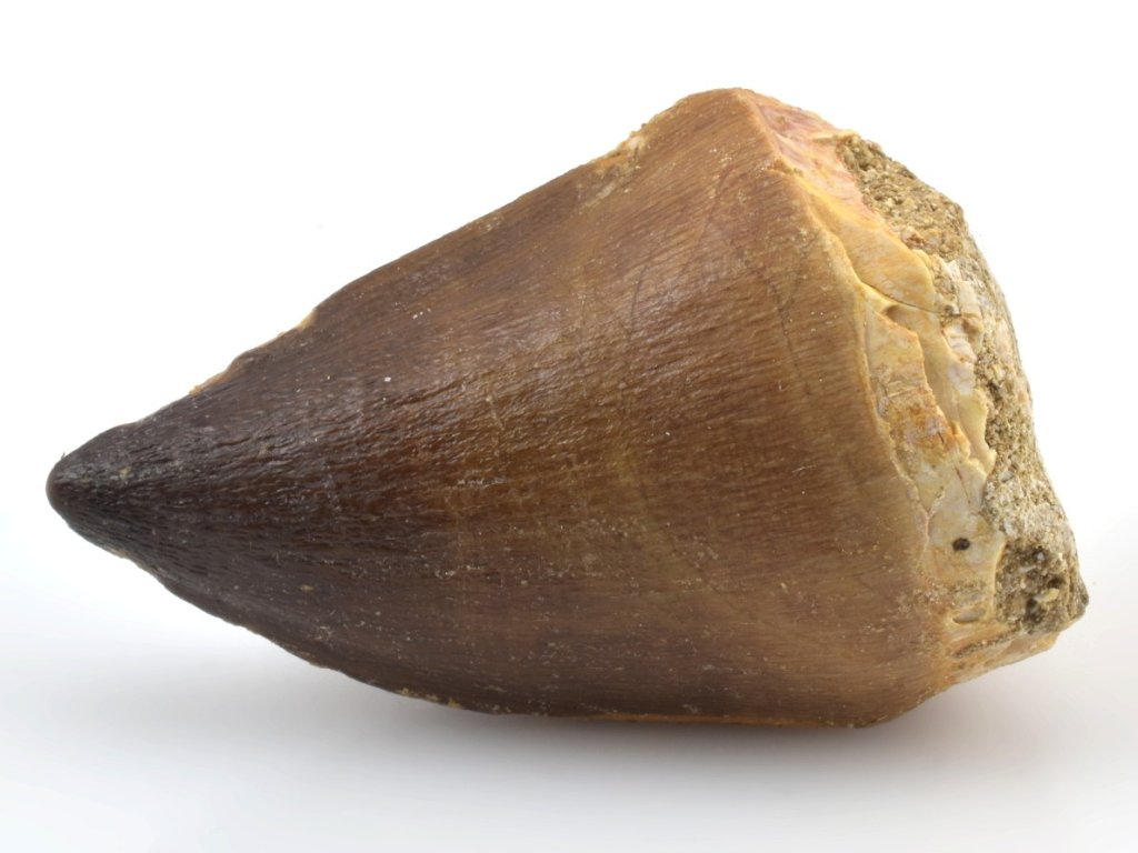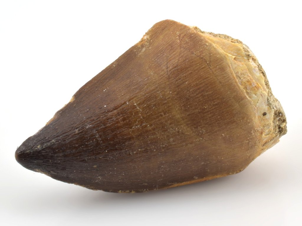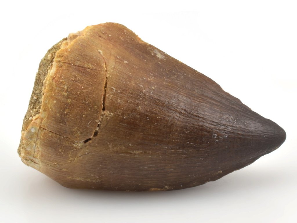 Volný výběrový zub obřího mořského fosilního plaza - mosasaura Thalassotitan atrox.