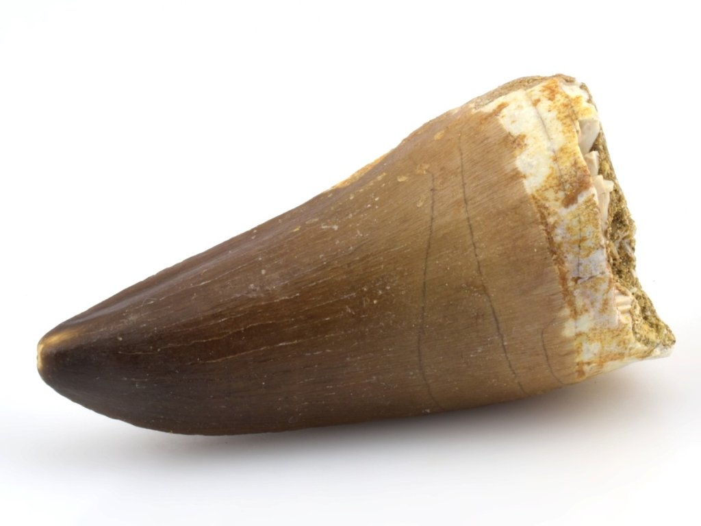 Volný výběrový zub obřího mořského fosilního plaza - mosasaura Thalassotitan atrox.
