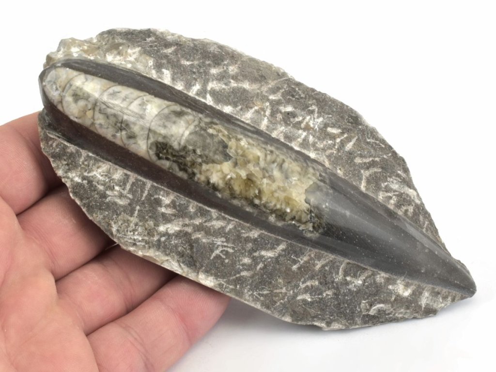 Nabízíme marocké zkameněliny orthocerů v horninách z období svrchního devonu. Jedná se o vyhynulé mořské hlavonožce s přímou kuželovitou schránkou. Název pochází z řeckého "orthos" = rovný a "keras" = roh. Maroko je v současnosti jedním z hlavních míst na světě, kde se tyto fosilie těží a zpracovávají.