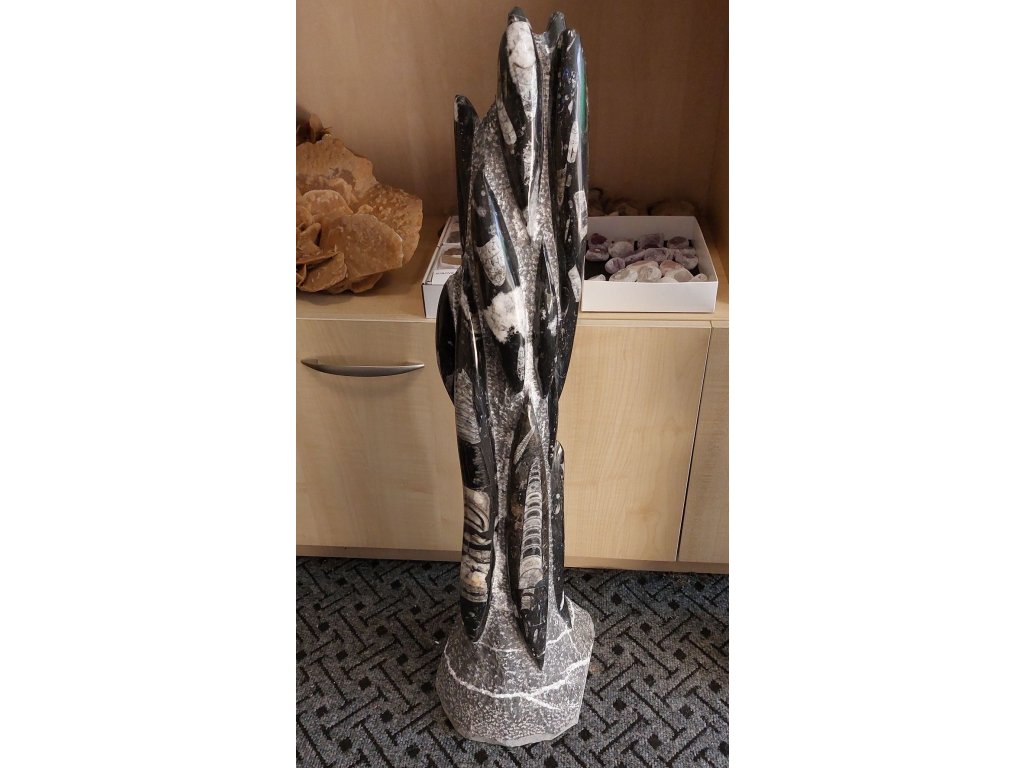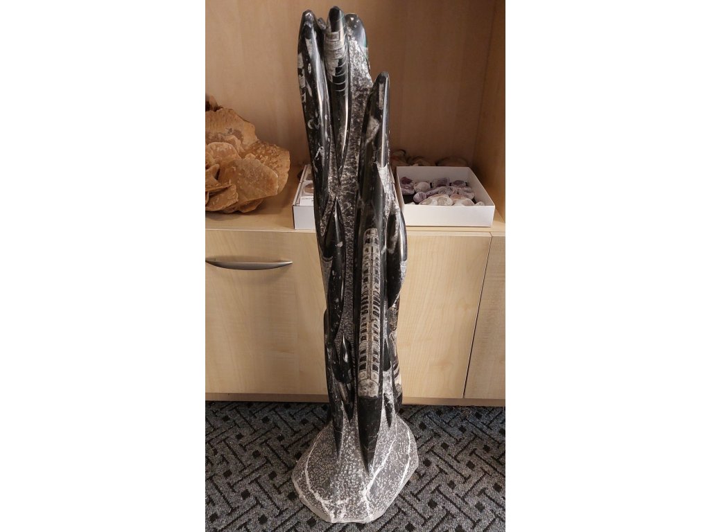 Velká samostatně stojící věž z tmavě šedého orthocerového vápence, bohatě prostoupená pravými fosiliemi dravých hlavonožců orthoceras.