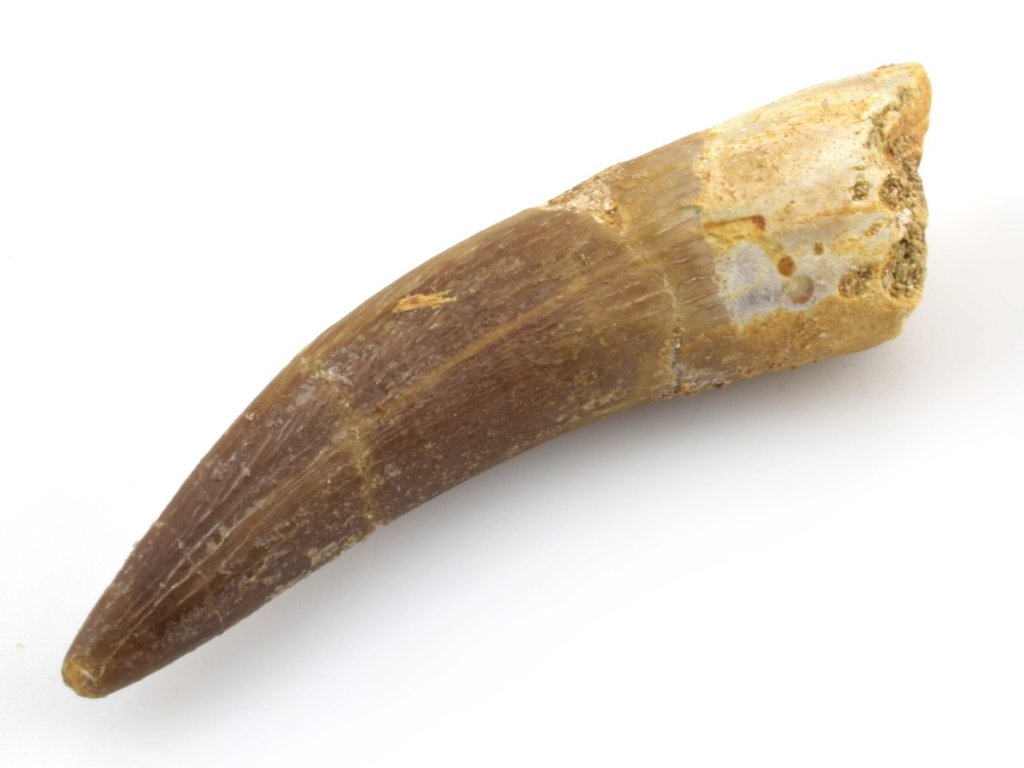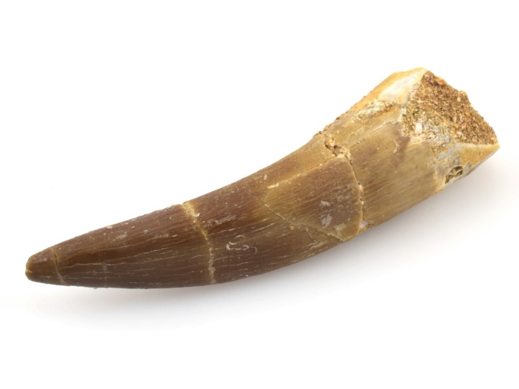 Zub plesiosaura Zarafasaura oceanis z Maroka s typickým rýhováním.