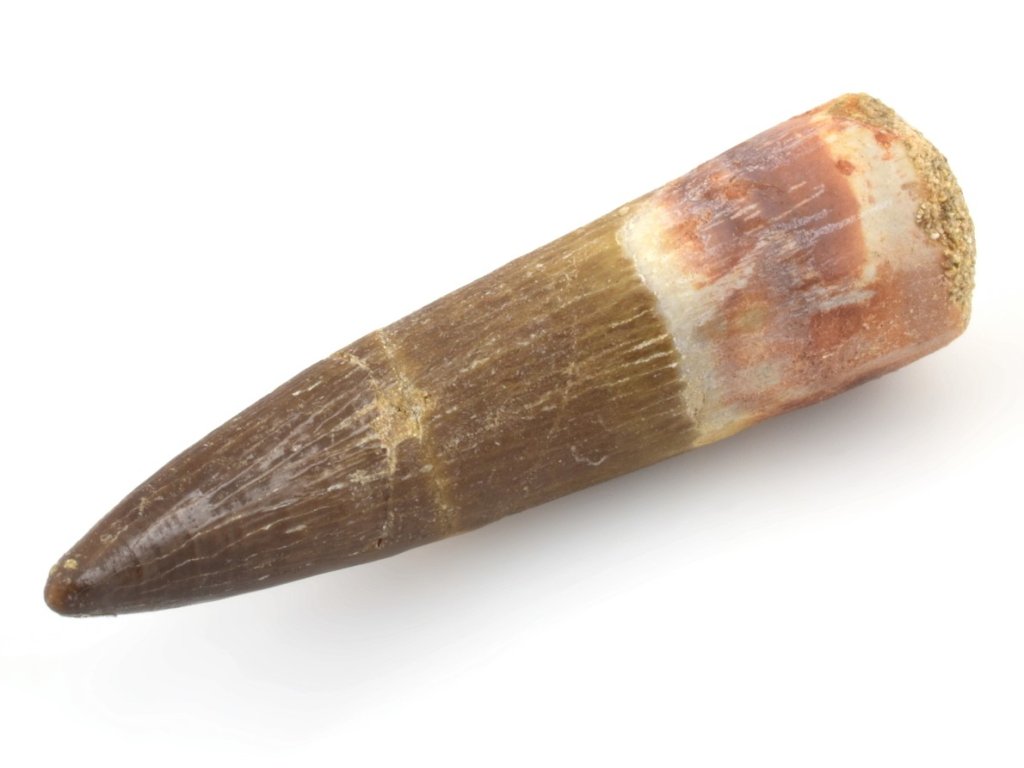 Zub plesiosaura Zarafasaura oceanis z Maroka s typickým rýhováním.