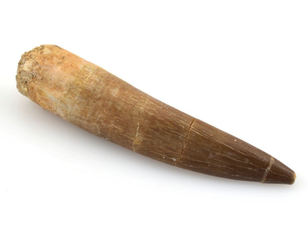 Zub plesiosaura Zarafasaura oceanis z Maroka s typickým rýhováním.