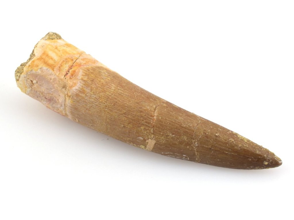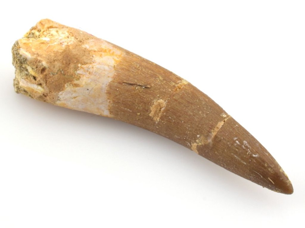 Zub plesiosaura Zarafasaura oceanis z Maroka s typickým rýhováním.