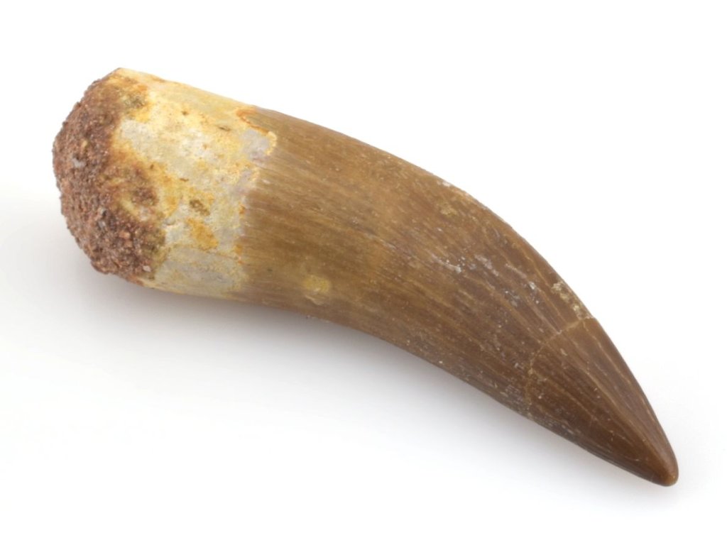 Zub plesiosaura Zarafasaura oceanis z Maroka s typickým rýhováním.