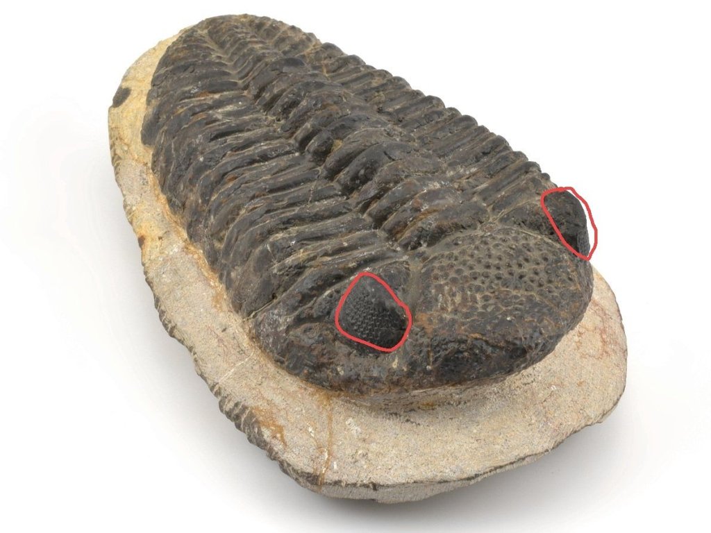 U tohoto trilobita byly rekonstruovány obě oči a zároveň bylo opraveno několik drobných trhlin. Rekonstruované oči jsou na vzorku sytější a tedy výraznější než ostatní části zkameněliny, jak je vidět i na přiložených fotografiích. Na vybraných snímcích jsou rekonstruované oblasti zvýrazněny červeně. Navzdory uvedeným úpravám jde o poměrně velký a velmi pěkný exemplář.