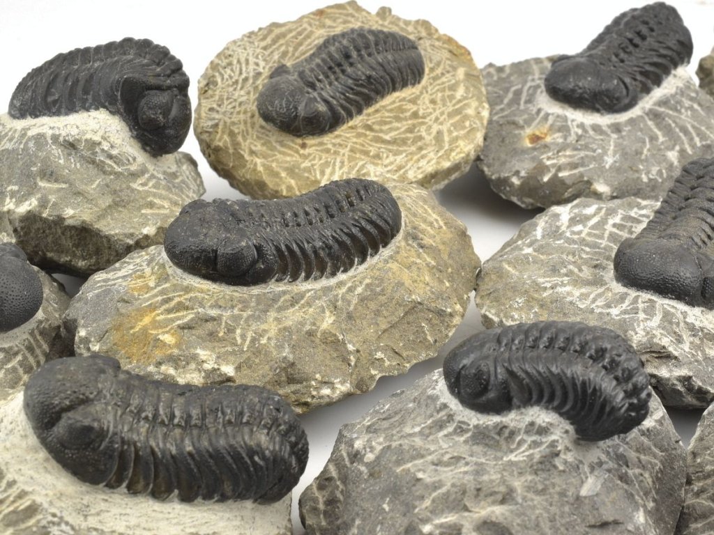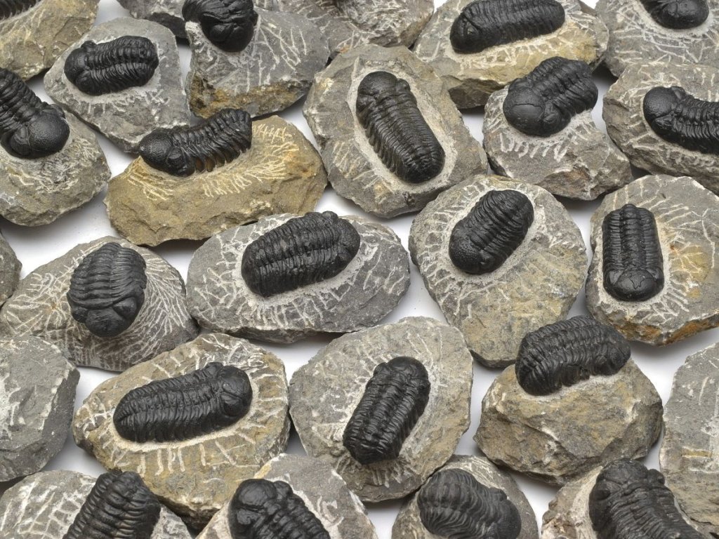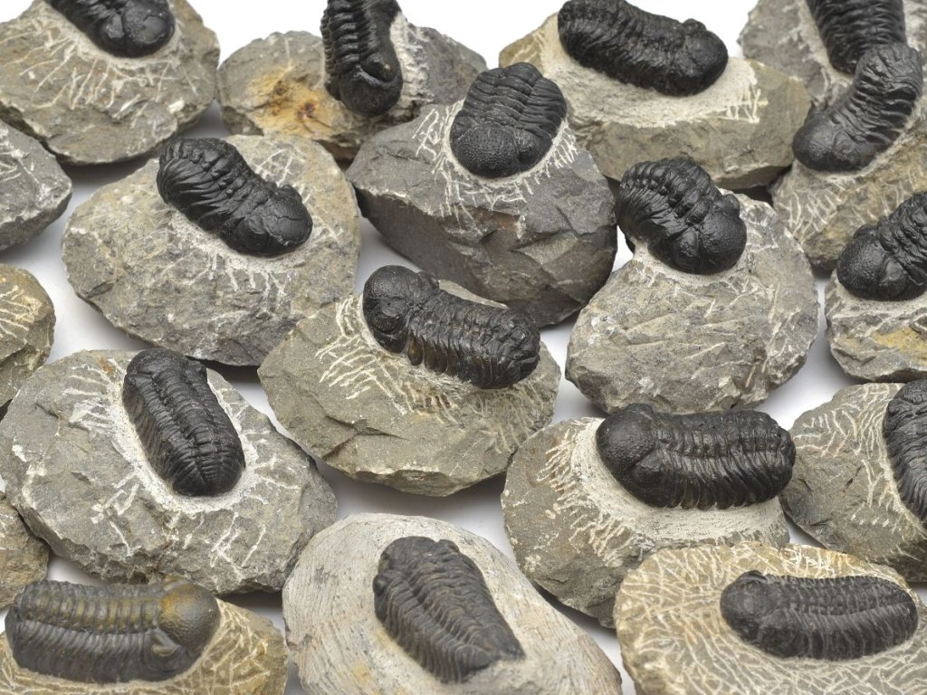 V této nabídce najdete pečlivě vybrané exempláře dobré a vyrovnané kvality. Jedná se o náhodný výběr z většího množství – není možné vybírat konkrétní kus z fotografie, ale garantujeme, že každý vzorek splňuje standard zobrazený na fotografiích. Trilobiti stočení nebo nakrčení jsou měřeni po obvodu v jejich ose. Zkameněliny jsou pečlivě zabalené a připravené k okamžité expedici z našeho skladu.