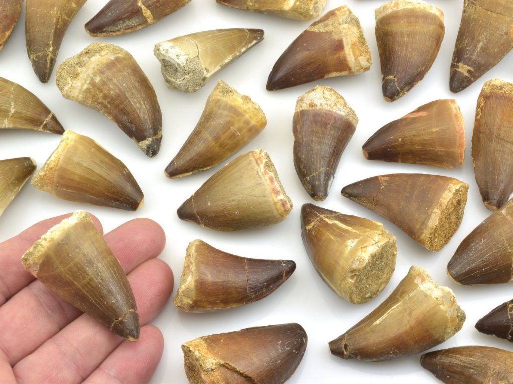 Zuby mosasaura větší než čtyři centimetry, jsou celkově mohutnější. Velikost zubu potěší každého sběratele.