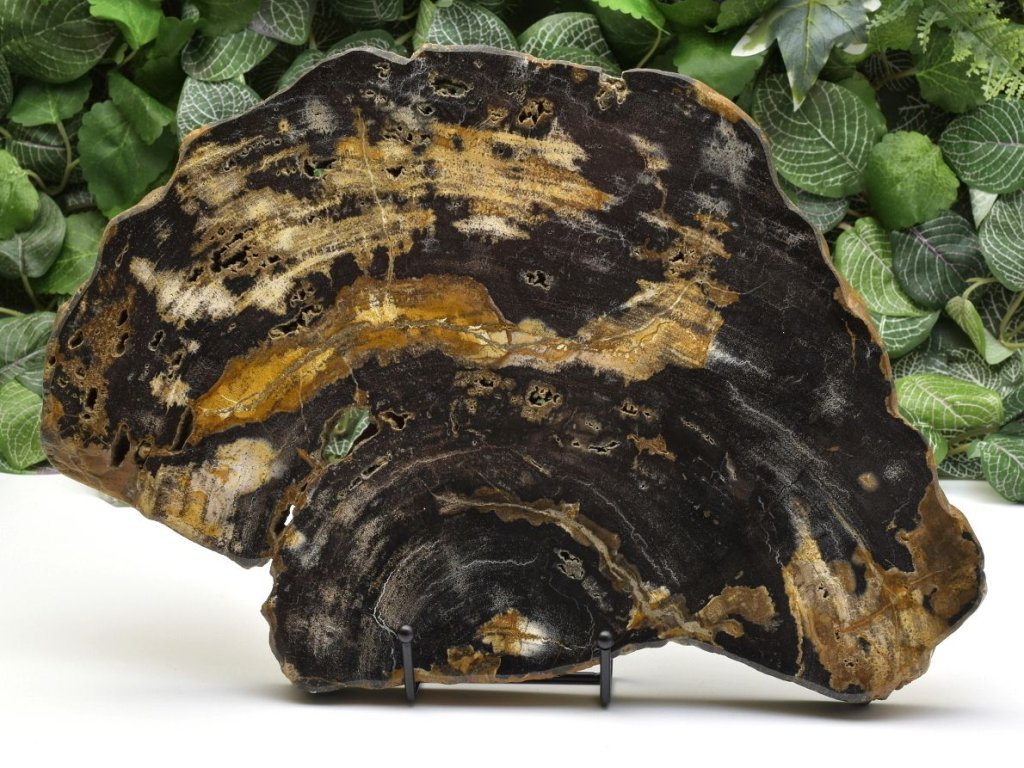 Velký kus zkamenělého dřeva, pocházející z exotického ostrova Jáva v Indonésii. Oboustranně leštěný plát o hmotnosti 3,48 kg je průřezem zkamenělého kmenu neurčeného druhu tropického dřeva. Plát se vyznačuje výrazným barevným kontrastem, přičemž je zachována unikátní struktura původního dřeva.