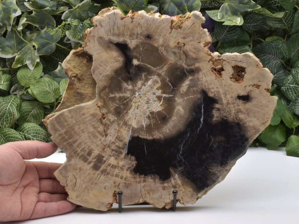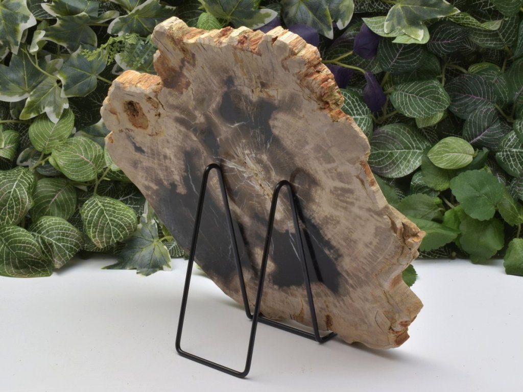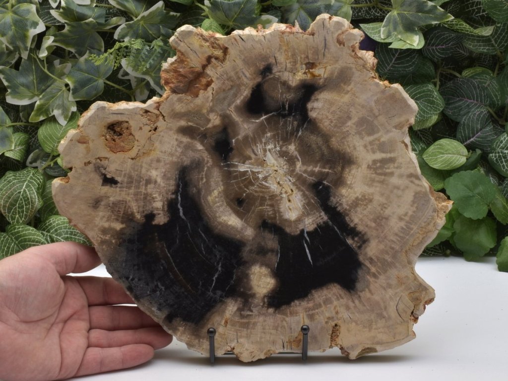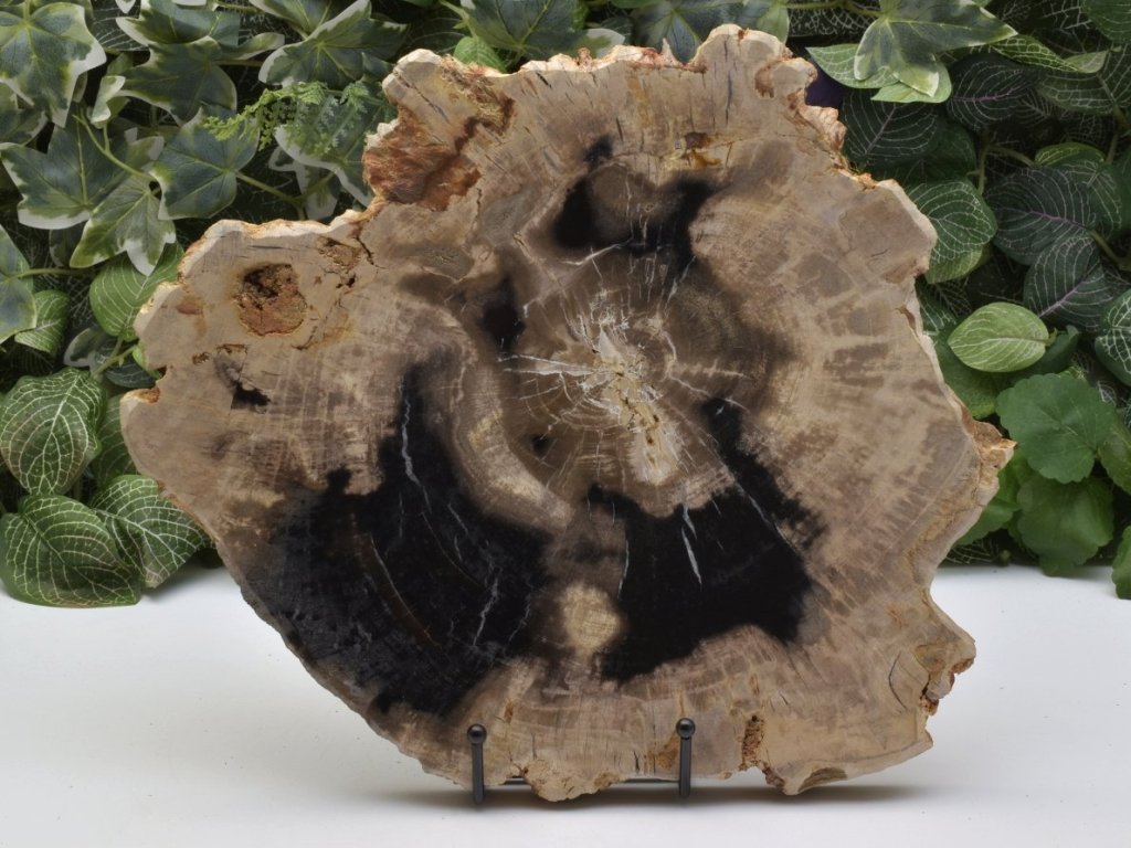 Velký kus zkamenělého dřeva, pocházející z exotického ostrova Jáva v Indonésii. Oboustranně leštěný plát o hmotnosti 2,9 kg je průřezem zkamenělého kmenu neurčeného druhu tropického dřeva. Plát se vyznačuje výrazným barevným kontrastem jemné krémové a sytě černé barvy, přičemž je zachována unikátní struktura původního dřeva.