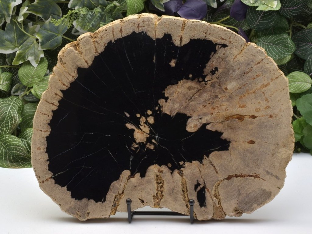 Velký kus zkamenělého dřeva, pocházející z exotického ostrova Jáva v Indonésii. Oboustranně leštěný plát o hmotnosti 2,9 kg je průřezem zkamenělého kmenu neurčeného druhu tropického dřeva. Plát se vyznačuje výrazným barevným kontrastem jemné krémové a sytě černé barvy, přičemž je zachována unikátní struktura původního dřeva.