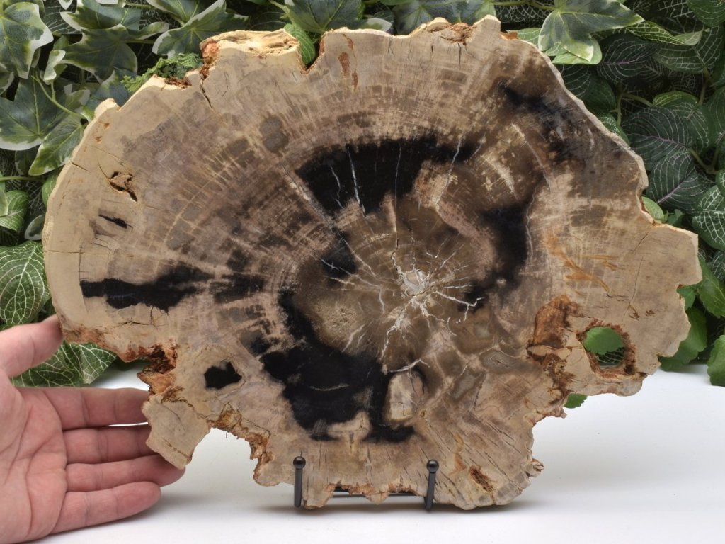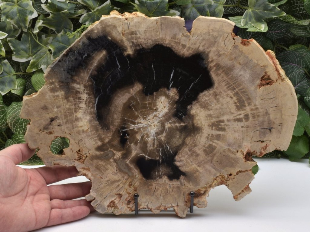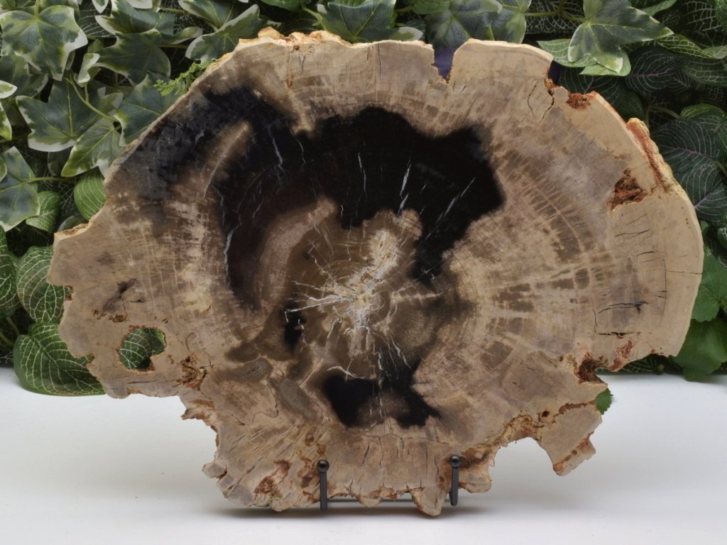 Velký kus zkamenělého dřeva, pocházející z exotického ostrova Jáva v Indonésii. Oboustranně leštěný plát o hmotnosti 3,2 kg je průřezem zkamenělého kmenu neurčeného druhu tropického dřeva. Plát se vyznačuje výrazným barevným kontrastem jemné krémové a sytě černé barvy, přičemž je zachována unikátní struktura původního dřeva.