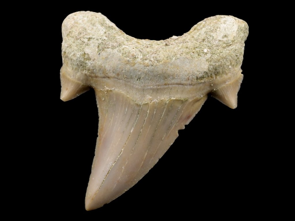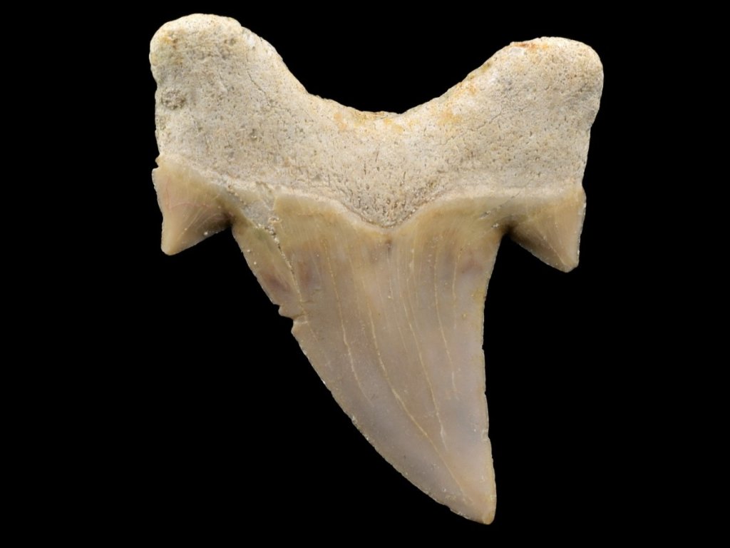 Fosilní zub žraloka Otodus obliquus.