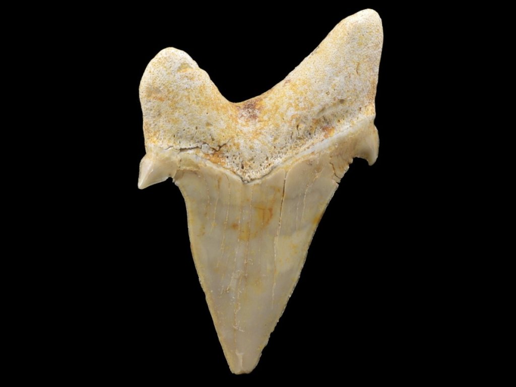 Fosilní zub žraloka Otodus obliquus.
