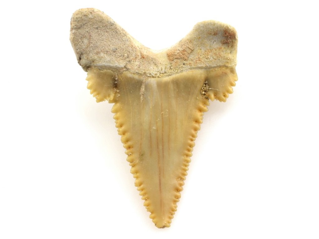Fosilní zub žraloka Palaeocarcharodon orientalis (Sinzow, 1899).