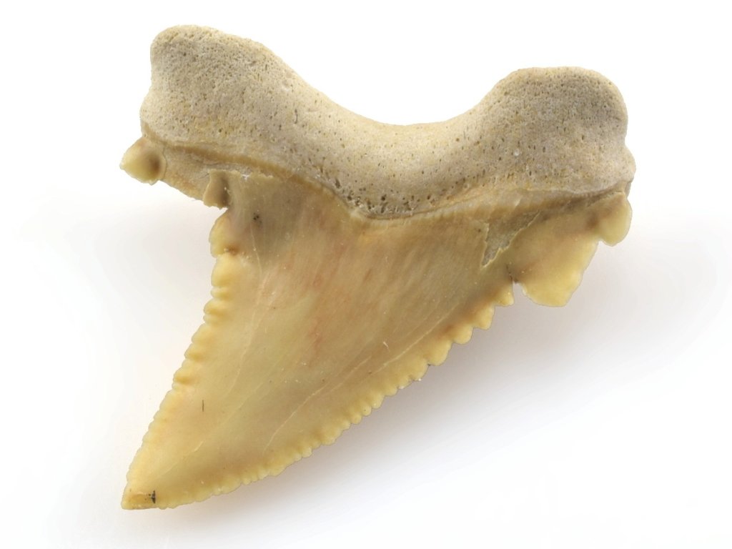 Fosilní zub žraloka Palaeocarcharodon orientalis (Sinzow, 1899).