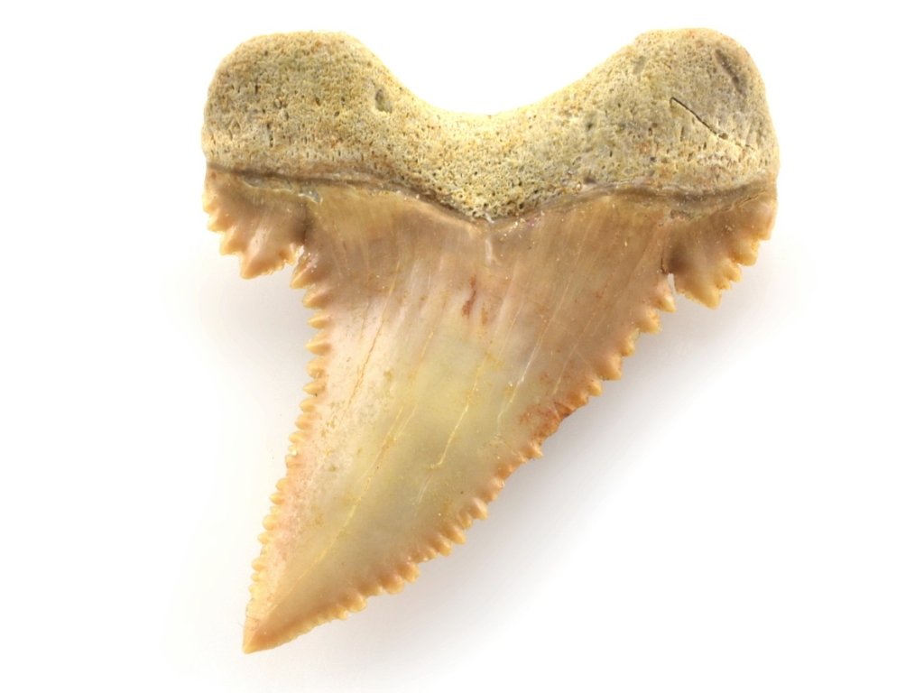 Fosilní zub žraloka Palaeocarcharodon orientalis (Sinzow, 1899).