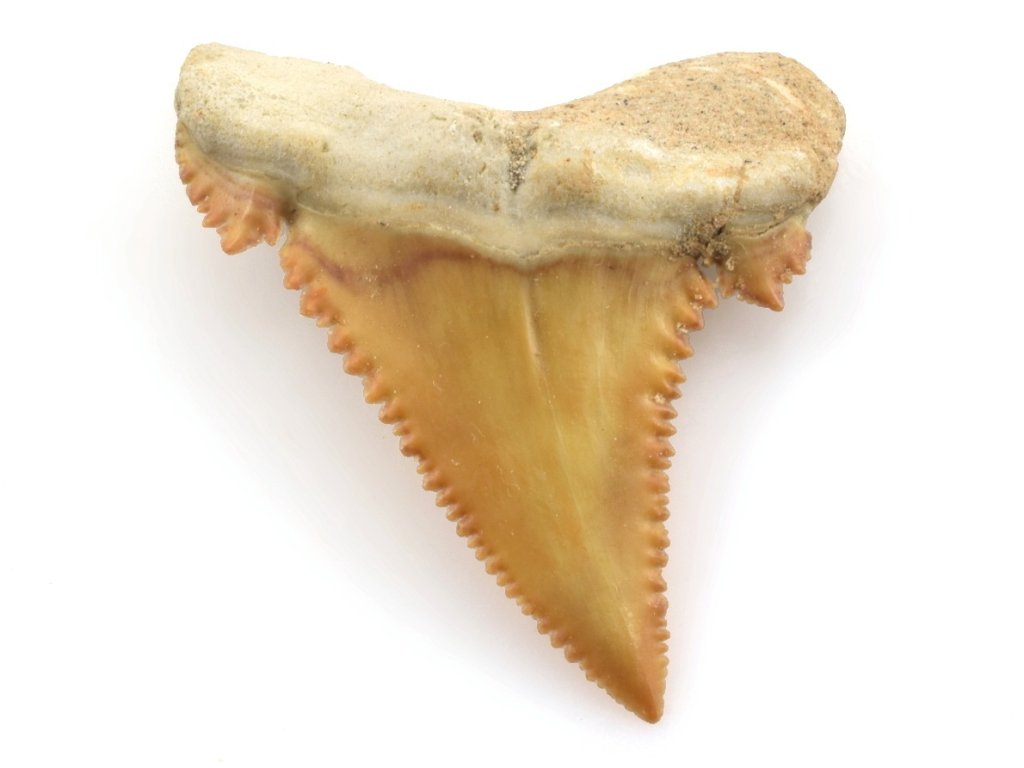Fosilní zub žraloka Palaeocarcharodon orientalis (Sinzow, 1899).