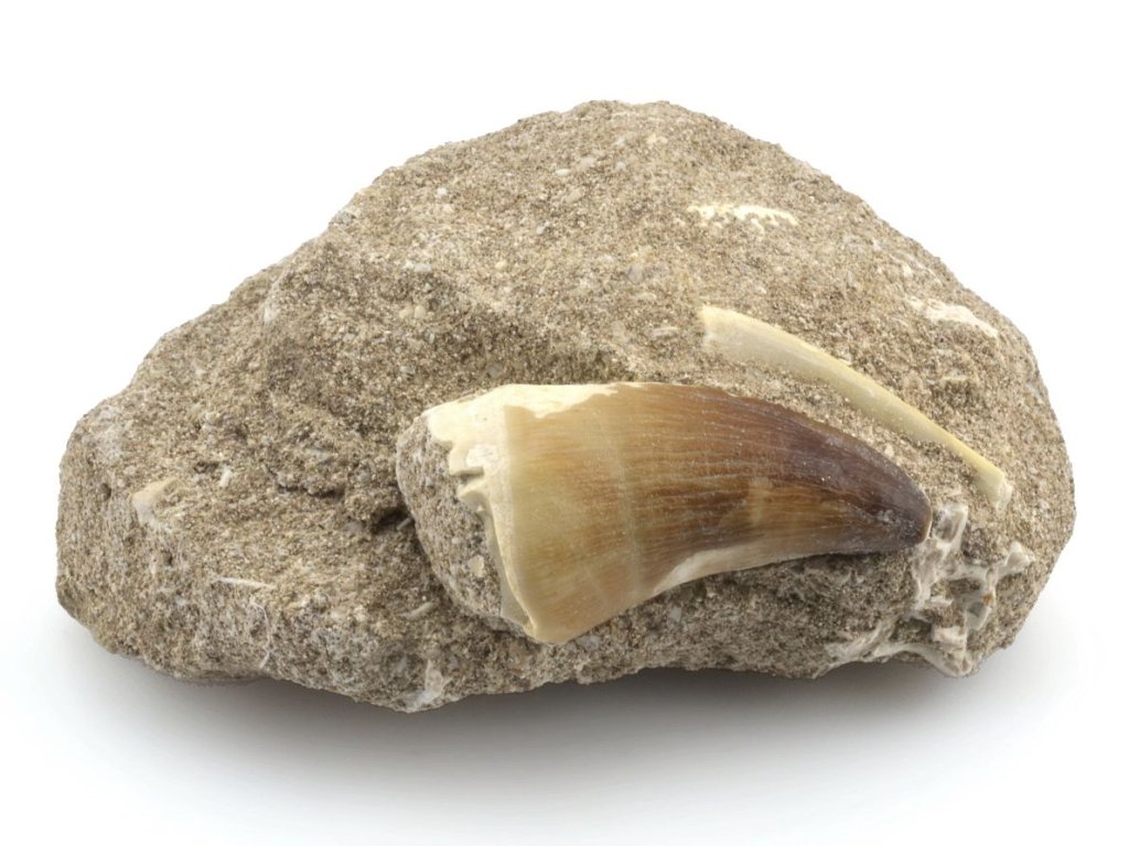 Zkamenělý zub na hornině je cennějším než běžně prodávané volné zuby. Pro sběratele fosilií je takový exemplář atraktivní možností získat vzorek, který zachycuje část dávno zaniklého ekosystému.