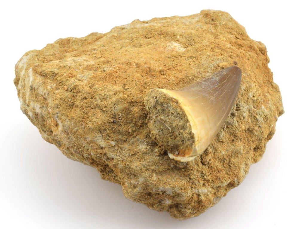 Zkamenělý zub na hornině je cennějším než běžně prodávané volné zuby. Pro sběratele fosilií je takový exemplář atraktivní možností získat vzorek, který zachycuje část dávno zaniklého ekosystému.