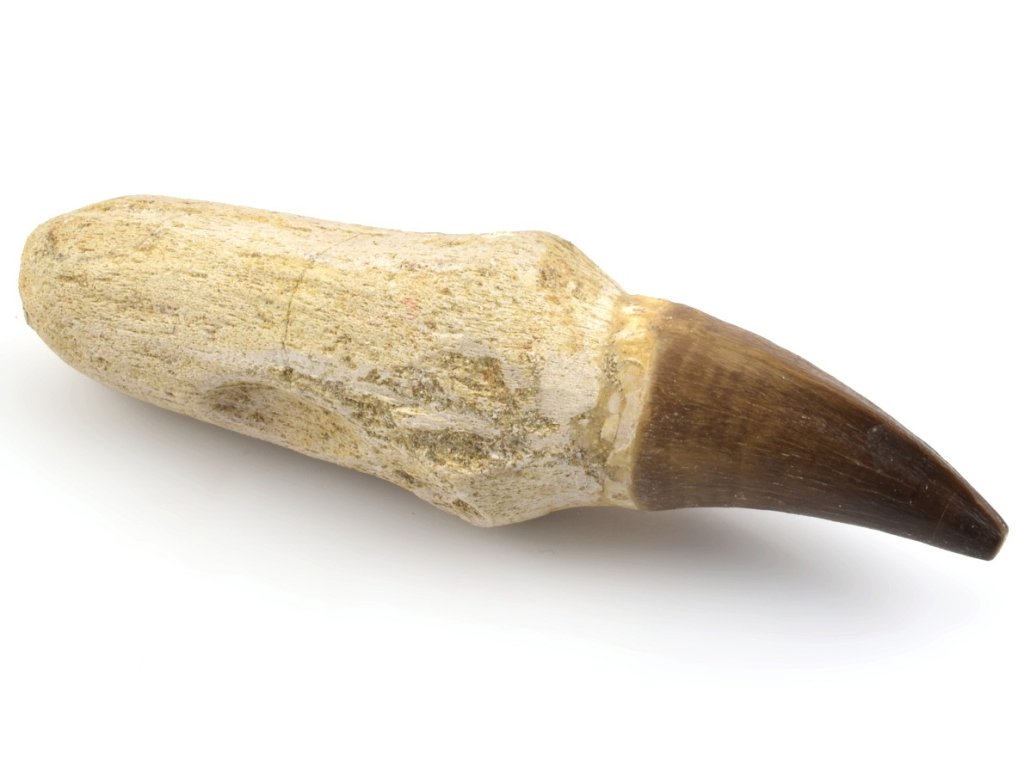 Tento zub je kompozitní – korunka a kořen pocházejí z různých jedinců a následně byly spojeny do jednoho exponátu. Na rozdíl od mnoha kompozitů však tento kus zachovává plnou fosilní autenticitu: jak samotná korunka, tak i kořen jsou pravé zkameněliny, nikoli doplněné či vyrobené náhrady z opracované kosti z jiné části fosilie.