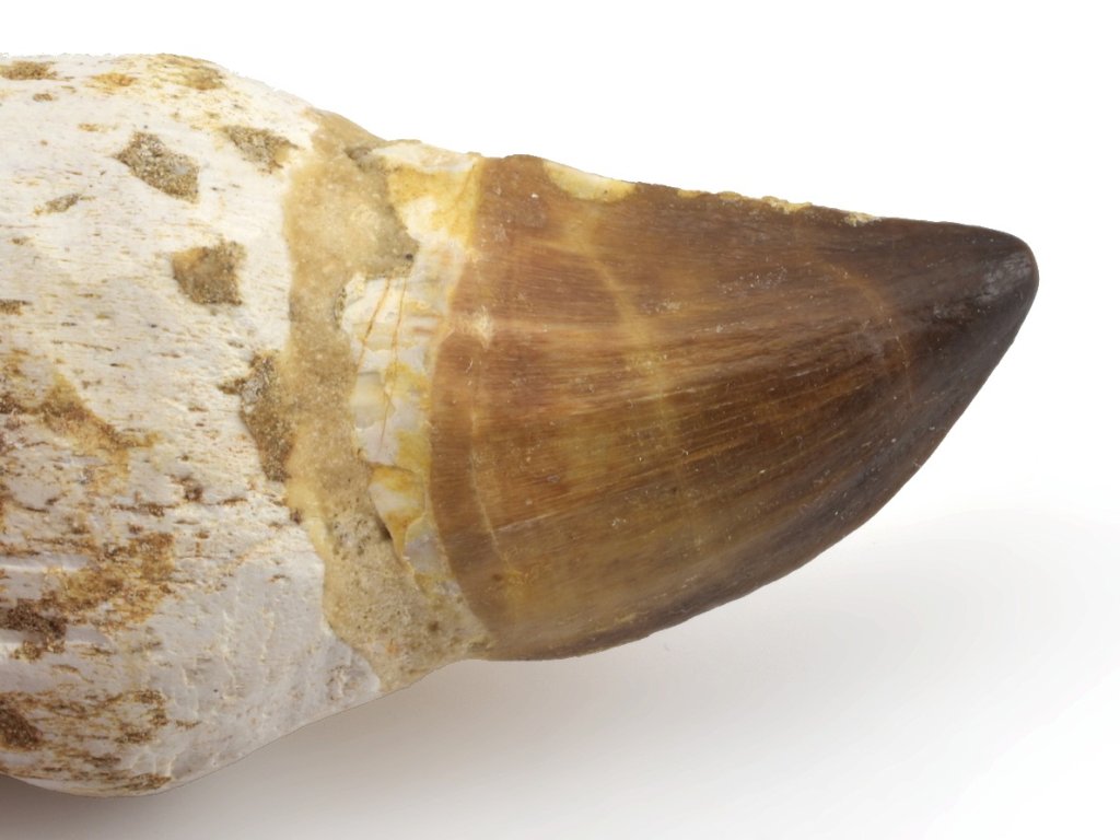 Zub včetně kořene - vyhnulého mořského plaza - mosasaura.