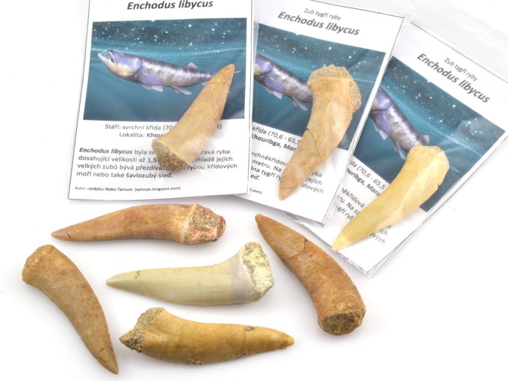 - 1 ks pravého fosilního zubu druhu Enchodus libycus
